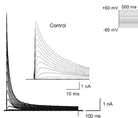 Channels of the Kv4 (Shal-type) family generate rapidly activating and inactivating potassium currents in response to membrane depolarization, significantly modulating action potential repolarization and frequency-dependent electrical signaling. The current associated with Kv4 channels (IA) has thus been hypothesized to play important functional roles in diverse excitable cell types, including neuronal somatodendritic interactions [466] [467], long-term potentiation [468], pain plasticity [470], and excitation-contraction coupling in smooth and cardiac muscle [469].