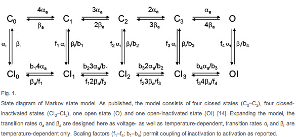 Markov Model (transition rates voltage AND TEMPERATURE dependent)