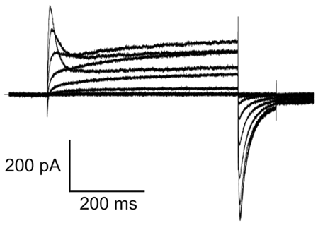 To improve the reproducibility of our measurements, we fused EGFP to the N terminus of Kv12.2. When cells were transfected with EGFP-Kv12.2, almost all EGFP-positive cells showed voltage-dependent transient outward currents and characteristic tail currents, which were absent in mock-transfected cells. The currents were similar to those of untagged Kv12.2 channels which were previously reported. We, therefore, concluded that EGFP-Kv12.2 could be used for further characterization of the channel [802]