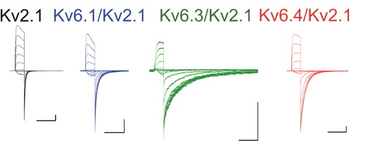 We previously showed that coexpression of Kv2.1 and Kv6.1 resulted in currents that deactivated extremely slowly upon depolarization [398]