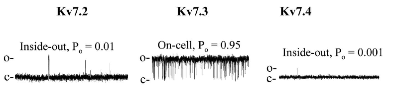 Syntaxin 1A expressed with KCNQ2 homomeric channels resulted in a 2-fold reduction in macroscopic conductance and 2-fold slower activation kinetics.[58]