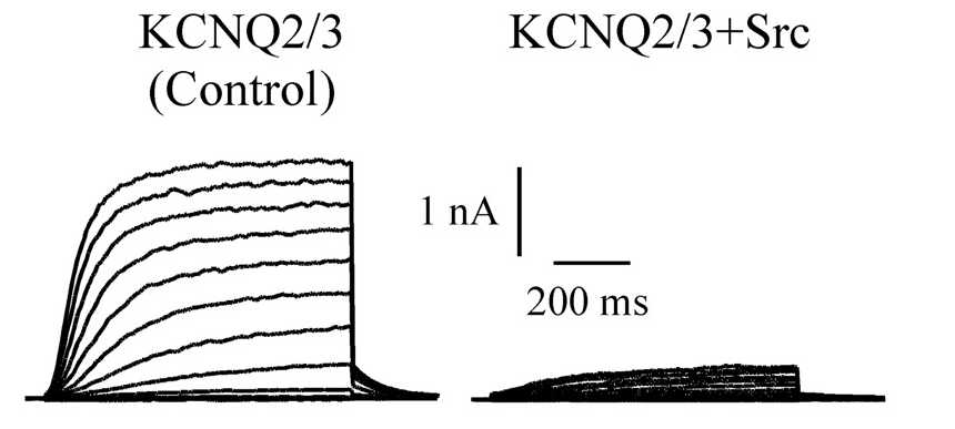 Subunit-specific modulation of KCNQ potassium channels by Src tyrosine kinase.
