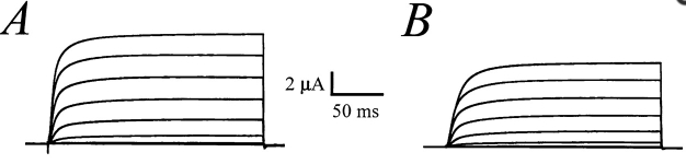 Currents recorded from a whole oocyte before (A) and after (B) the injection of 50 nl 2 M NaCl [1721]