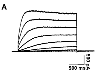 Eag channels, eag1 and eag2, are characterized by outward rectification without inactivation, and by fast deactivation and slow activation. The activation kinetics depend on the holding potential (‘‘Cole–Moore shift’’) and extracellular magnesium [81]