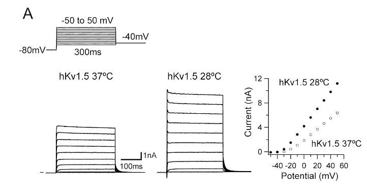 Low temperature exposure increases the protein expression levels of hKv1.5 [1573]