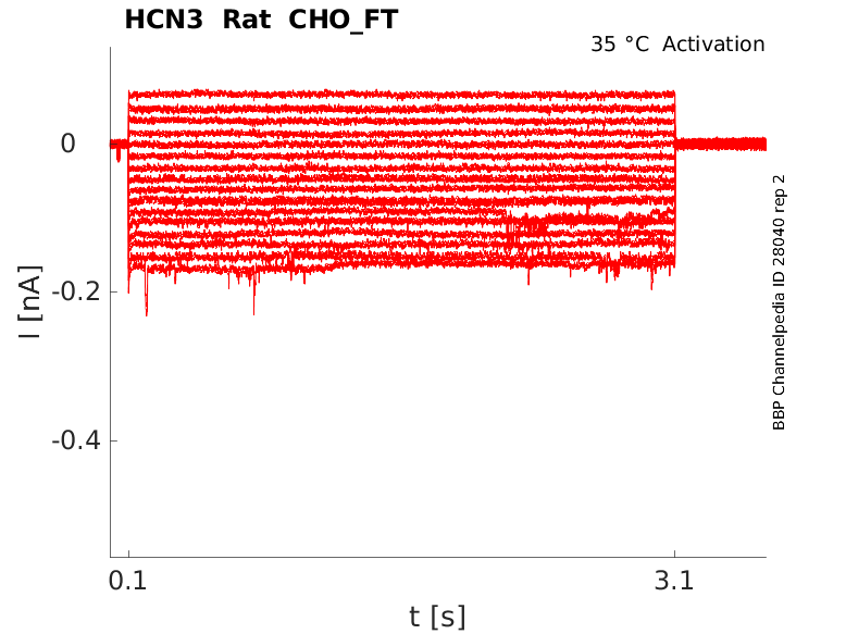 HCN3 exhibits relatively slow activation kinetics, characterized by time constants spanning from 250 to 400 milliseconds at a membrane potential of -140 mV. These activation kinetics are comparatively slower than those of HCN1 and HCN2 but faster than the corresponding kinetics of HCN4. The midpoint of activation (V1/2) for HCN3 falls within the range of -80 to -95 mV, and its reversal potential (Erev) has been determined to be approximately -20.5 +/- 4 mV. Consequently, HCN3 demonstrates a permeability ratio (PNa/Pk) of 0.3. [56] [457]