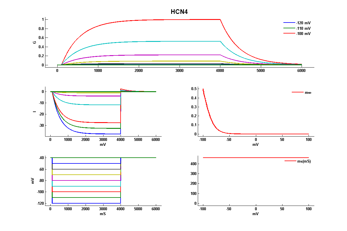 Similar to other HCN channels, HCN4 is believed to undergo mode shifting. However, the discernible effects of these mode shifts were primarily observed in the tail currents under specific conditions, such as in high-external K+ solutions. [2349] [457]